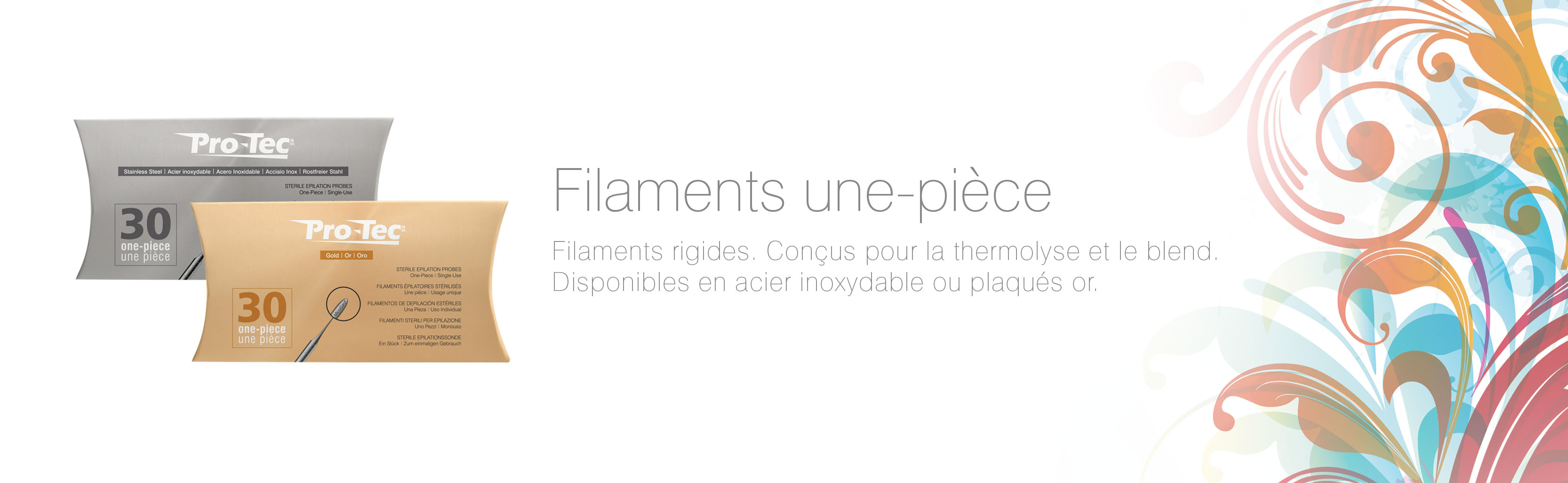 Les créateurs de la ligne de filaments d’électrolyse et de thermocoagulation Pro•Tec ont été guidés par une seule et unique obsession – votre tranquillité d’esprit, ainsi que celle de votre client.