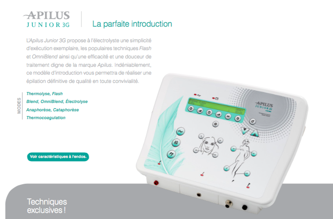 Modalités de traitement: thermolyse, flash, blend, omniblend, électrolyse, anaphorèse, cataphorèse, thermocoagulation Programme de cataphorèse pour soins post-épilatoires personnalisés Analyseur de la tolérance de votre client Analyseur d'hydratation de la peau Fonction de méso-ionisation pour soins esthétiques spécialisés Mode automatique pour opération sans pédale GARANTIE 3 ANS MADE IN CANADA